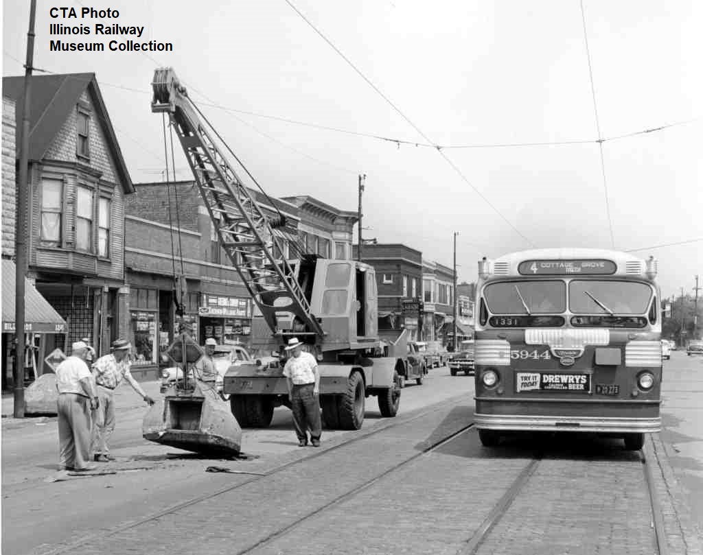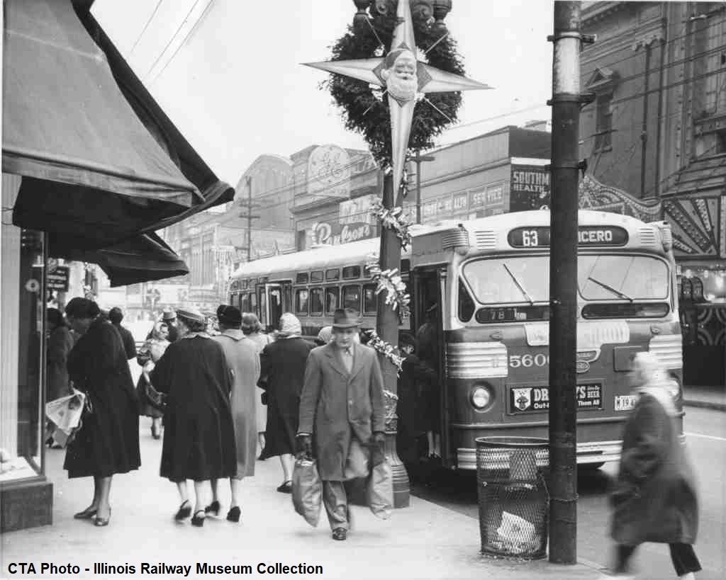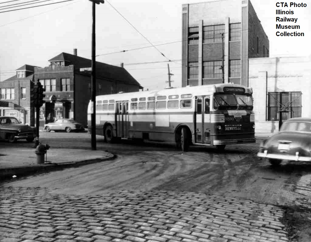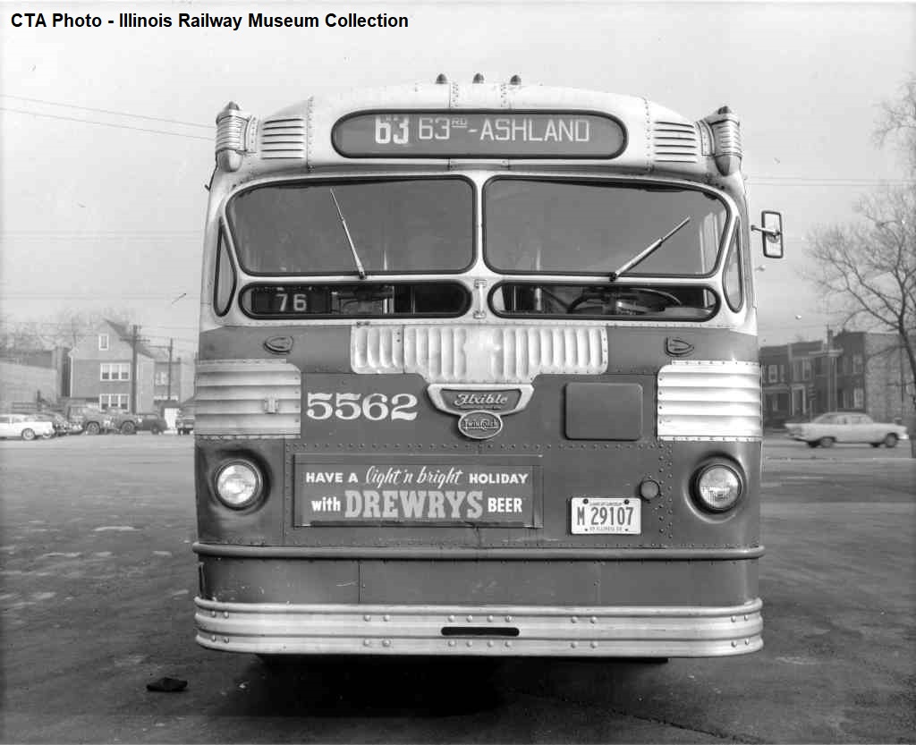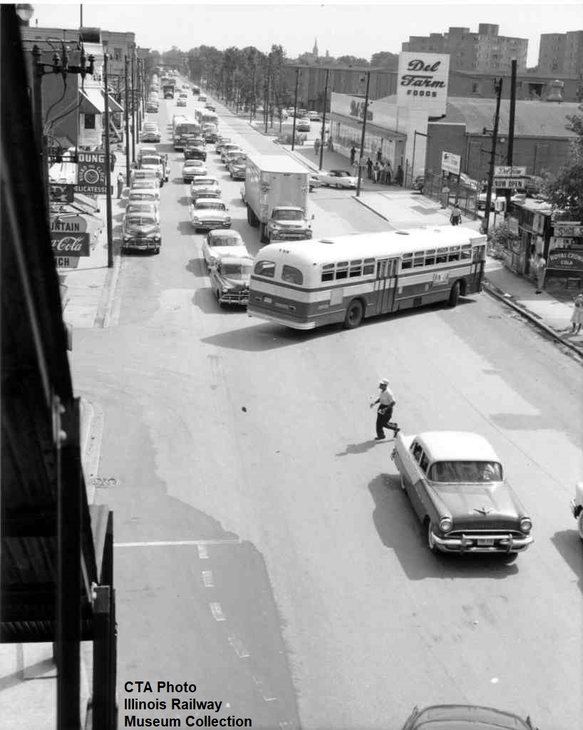 CTA #5500-series bus at 63rd & Halsted - 1956