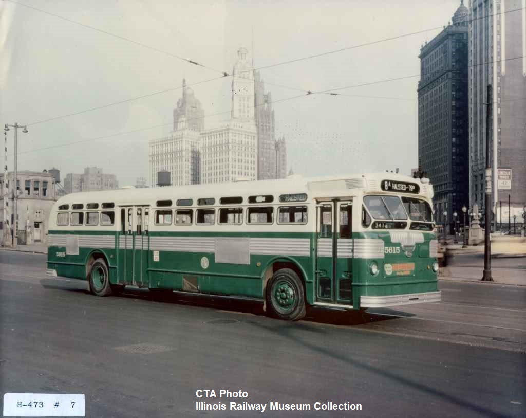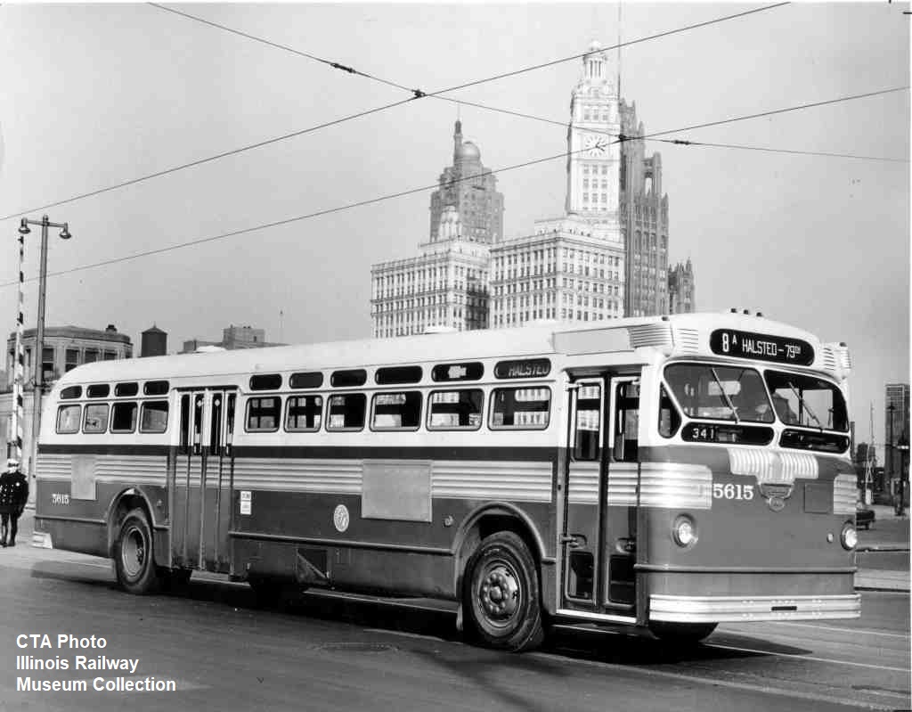 Some photos are CMC buses after they were purchased by the CTA. Some photos seem to be shot for publicity purposes, thus different photos look very similar. We have included all versions that we have. The number is parenthesis under the photo descriptions is simply for our inventory purposes. Please ignore them.