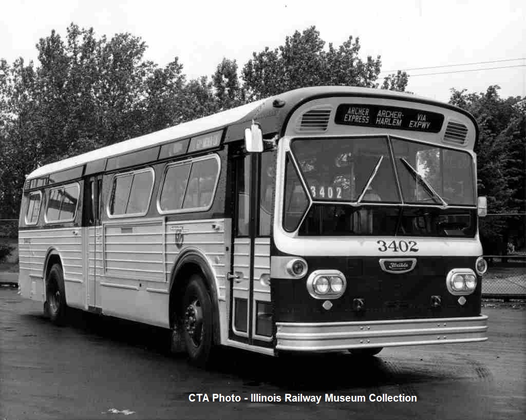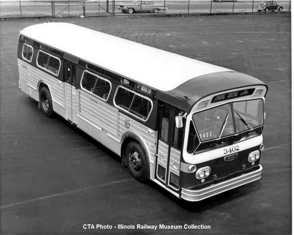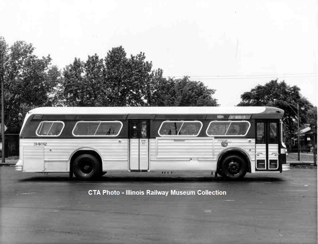 Some photos are CMC buses after they were purchased by the CTA. Some photos seem to be shot for publicity purposes, thus different photos look very similar. We have included all versions that we have. The number is parenthesis under the photo descriptions is simply for our inventory purposes. Please ignore them.