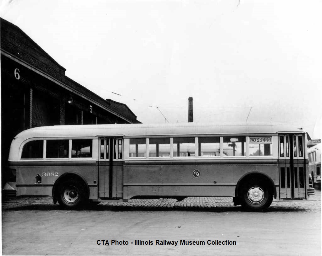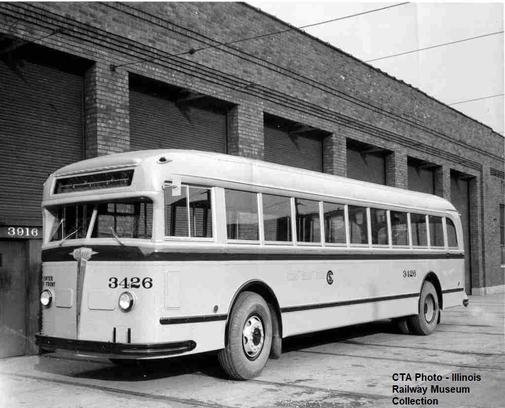 Some photos are CMC buses after they were purchased by the CTA. Some photos seem to be shot for publicity purposes, thus different photos look very similar. We have included all versions that we have. The number is parenthesis under the photo descriptions is simply for our inventory purposes. Please ignore them.