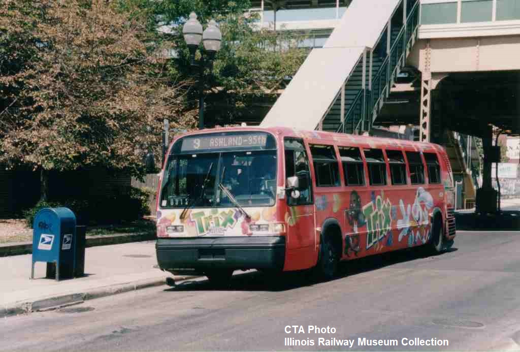 Some photos are CMC buses after they were purchased by the CTA. Some photos seem to be shot for publicity purposes, thus different photos look very similar. We have included all versions that we have. The number is parenthesis under the photo descriptions is simply for our inventory purposes. Please ignore them.