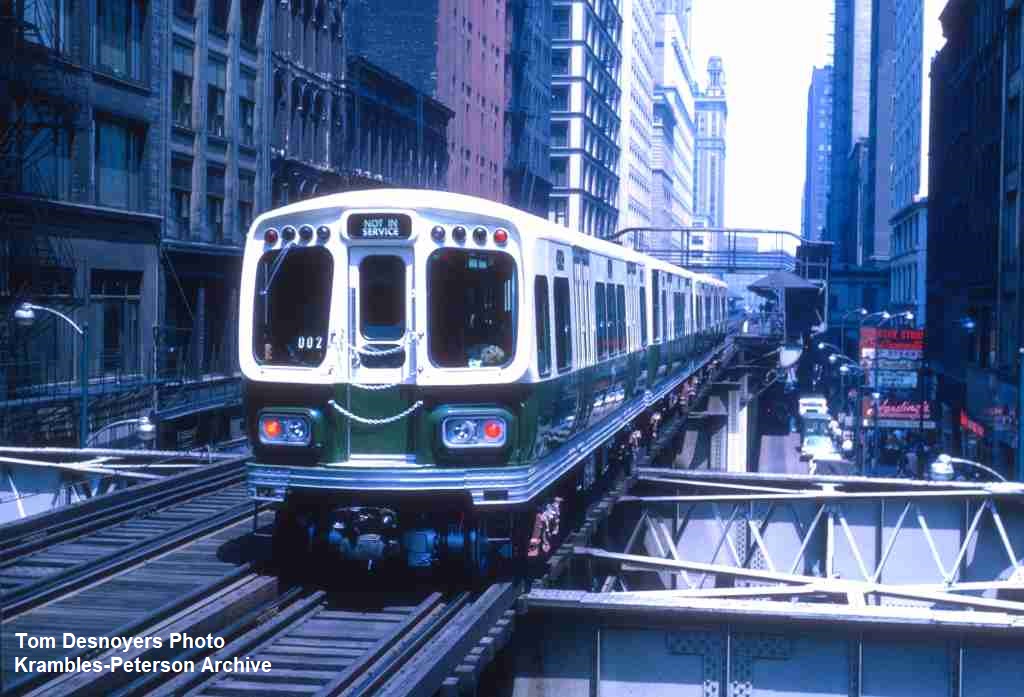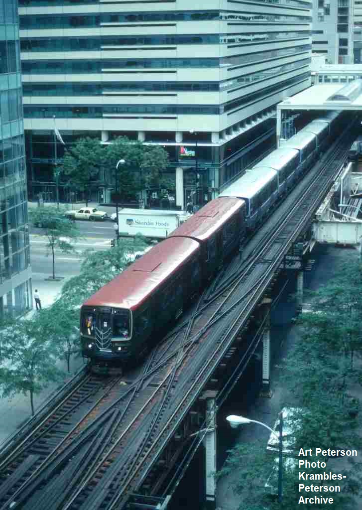 KP0389-CTA #2008 Leading a Charter train Westbound at Lake & LaSalle - 07/22/1993