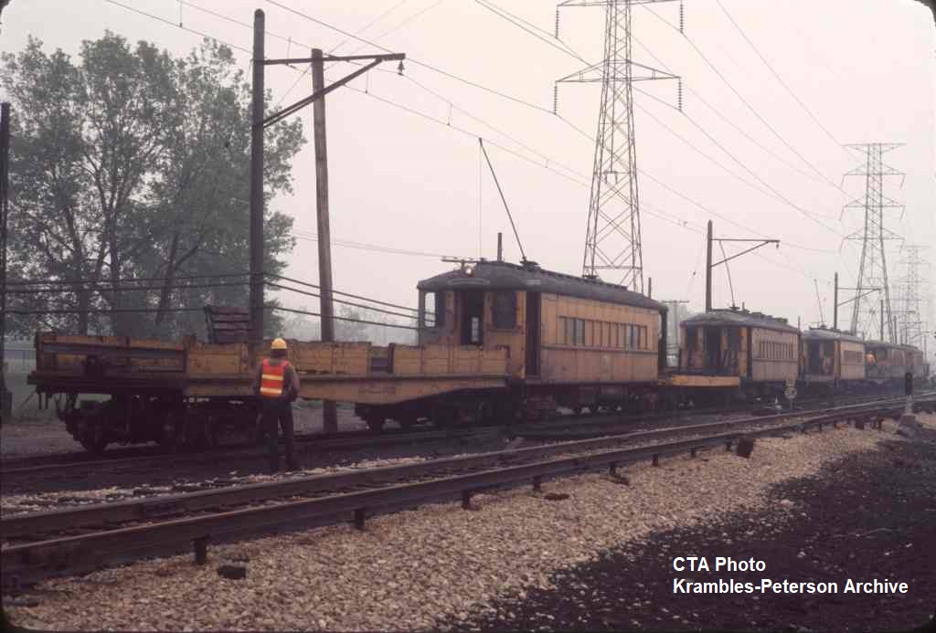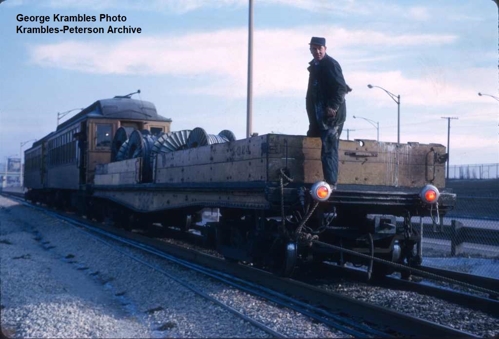 KP0583-CTA #S-337 on the east end of a cable laying train at Lavergne on the Congress Line - 12/16/1962