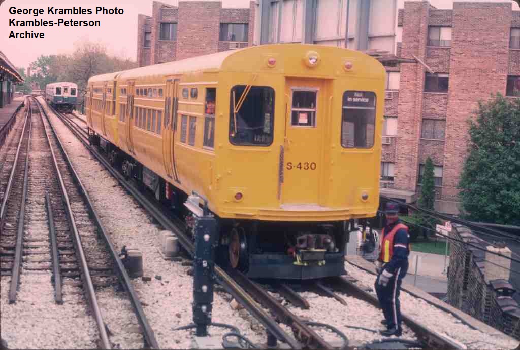 KP0644-CTA #S-429 (x6517 coverted to work service in 1992) Leading a Work Train Southbound at Armitage - 07/05/1985 (Thanks to Bruce Moffat for original car number identification)