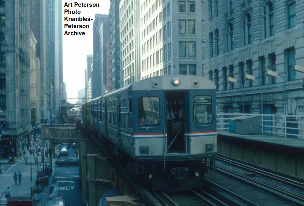 KP0647-CTA #S-451 (x6709 converted to work service in 1992) Northbound at Randolph & Wabash - 08/24/1993 (Thanks to Bruce Moffat for original car number identification)