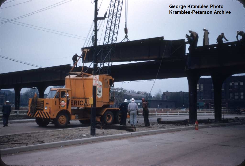 KP0720-CTA Garfield Line, Contractors dismantling the structure across Damen - 10/11/1953