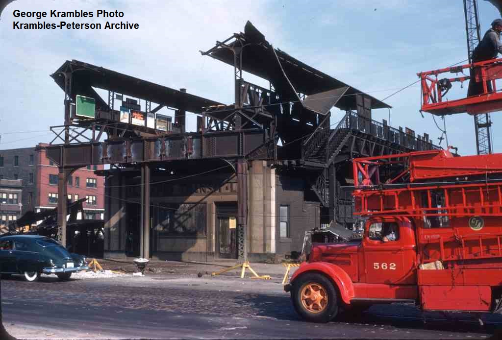 KP0722-CTA Garfield Line, Art Deco Station House Front at Western During Structure Removal - 10/18/1953