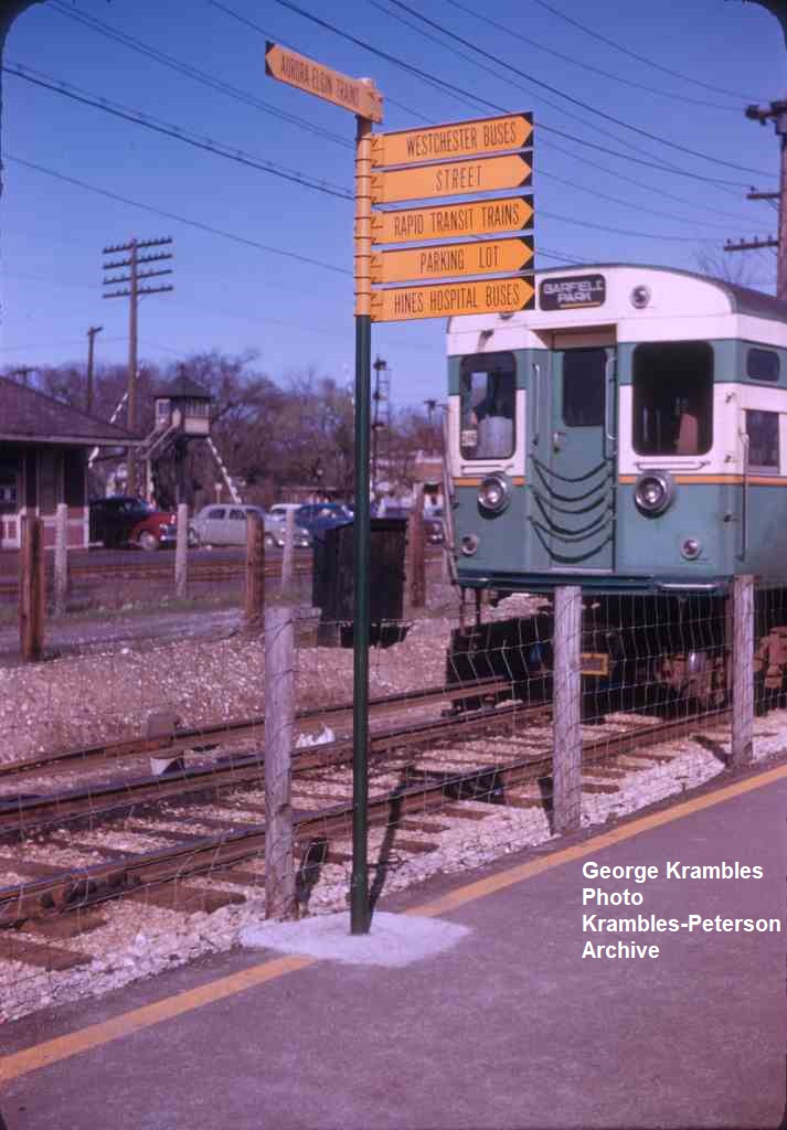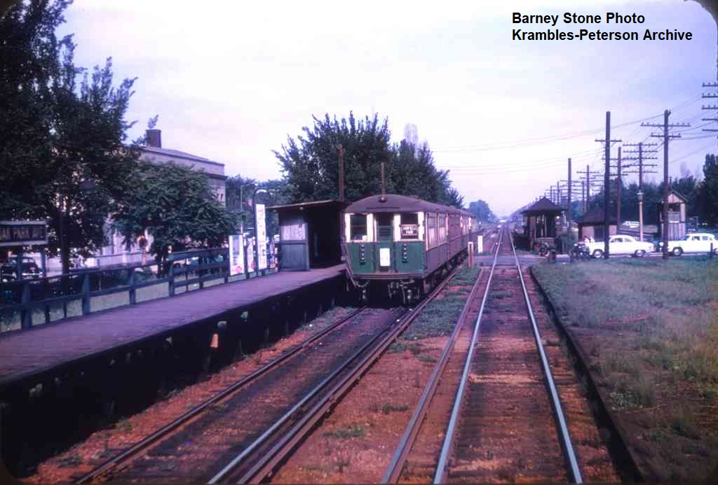 KP0735-CTA Garfield Line, Westbound train and Eastbound Home Ave Station House - c1951