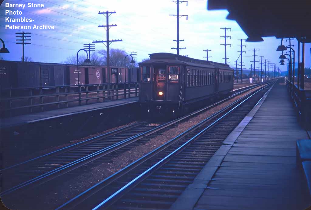 KP0717-CTA Garfield Line, Moving past the CA&E Marshfield Station - 03/1952