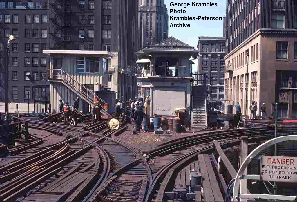 KP0833-CTA Loop, The old and new Tower 18s looking west through the interlocking - c08/1969