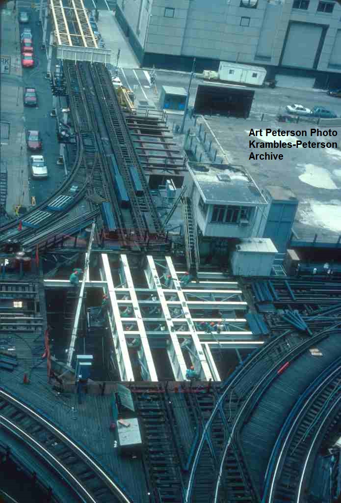 KP0837-CTA Loop, The shutdown of the Green Line afforded the opportunity to do some track work around Tower 18. Here the diamonds have been removed and will be replaced. - 09/12/1994