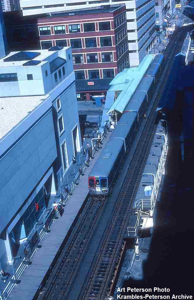 KP0854-CTA Loop, #2069 leads a westbound train at State & Lake - 05/13/1993