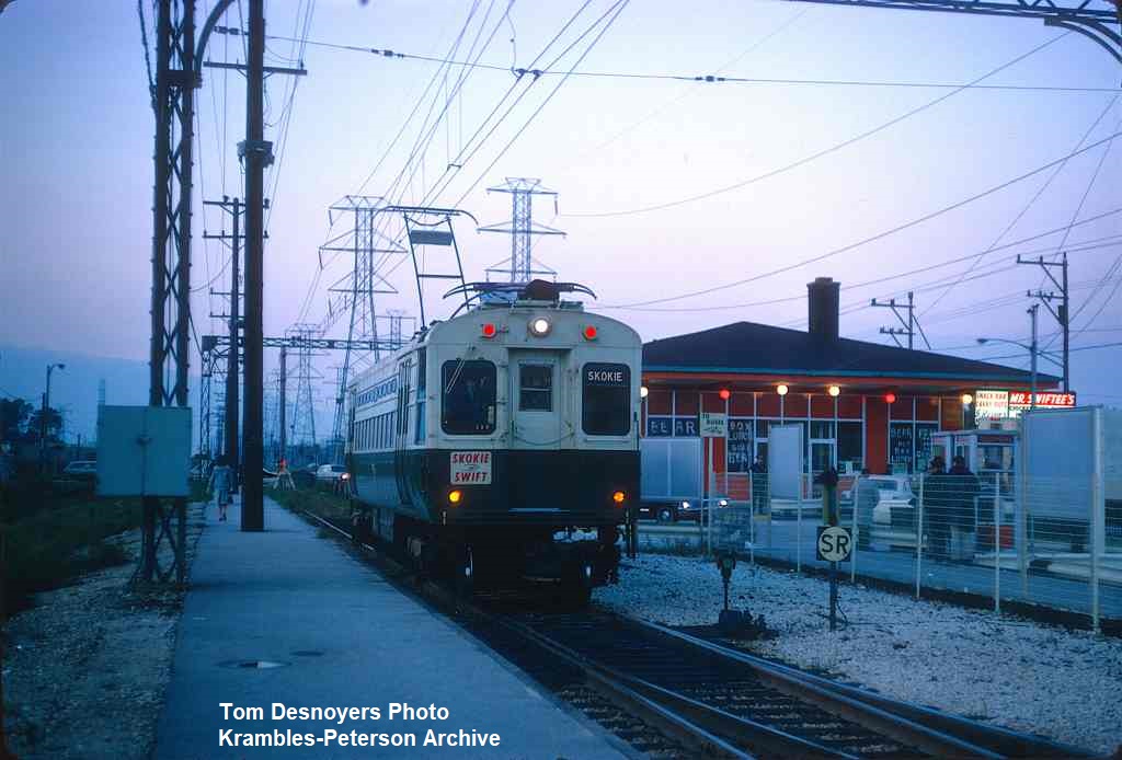 KP0980-CTA Skokie, #25 on the tail track with the station house in the background - 10/11/1967