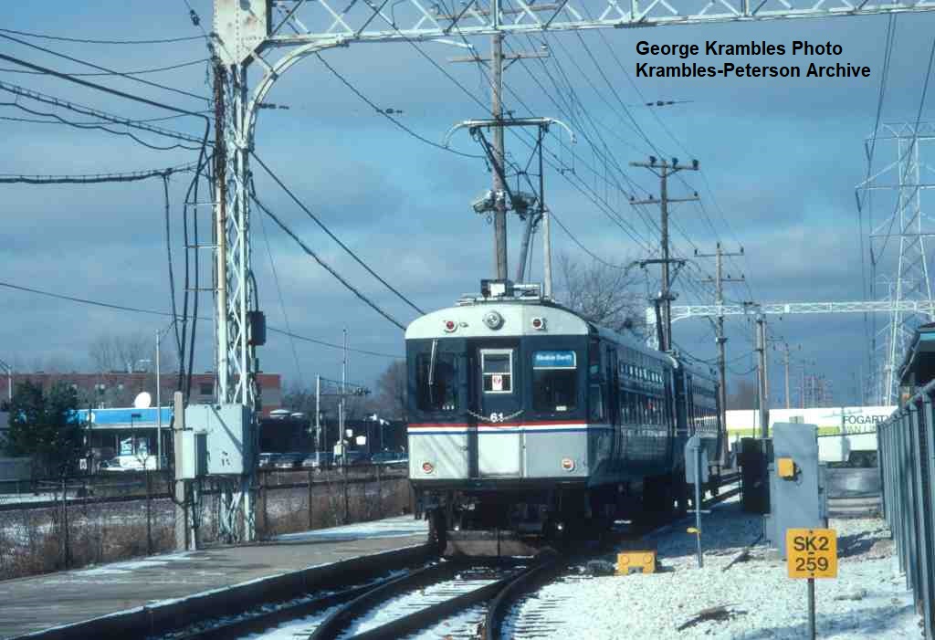 KP0982-CTA Skokie, #61 on the tail track just after the line reopened after track reconstruction work - 11/25/1991