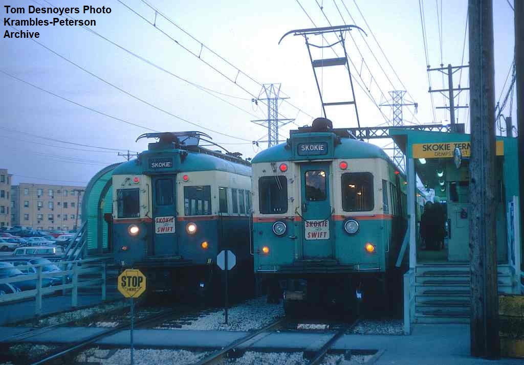 KP0987-CTA Skokie, #51 and #53 in the Dempster Station - 10/11/1967