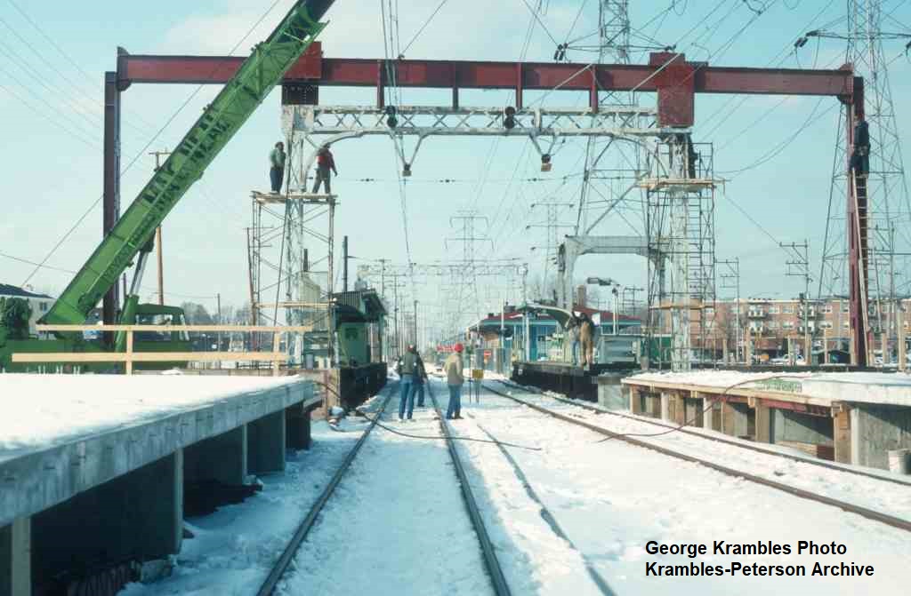 KP0990-CTA Skokie, Construction of the catenary bridge at the Dempster station with the #43 in the background - 02/27/1993