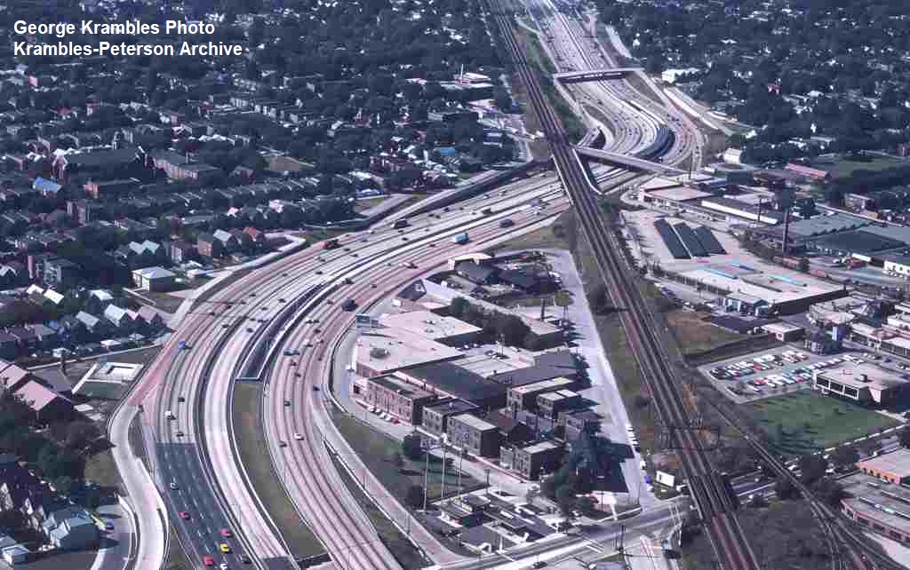 KP1090-CTA Logan Square/Milwaukee/O'Hare, Aerial view looking north toward the subway portal at Kimball - 09/17/1969