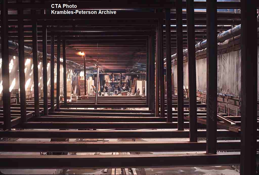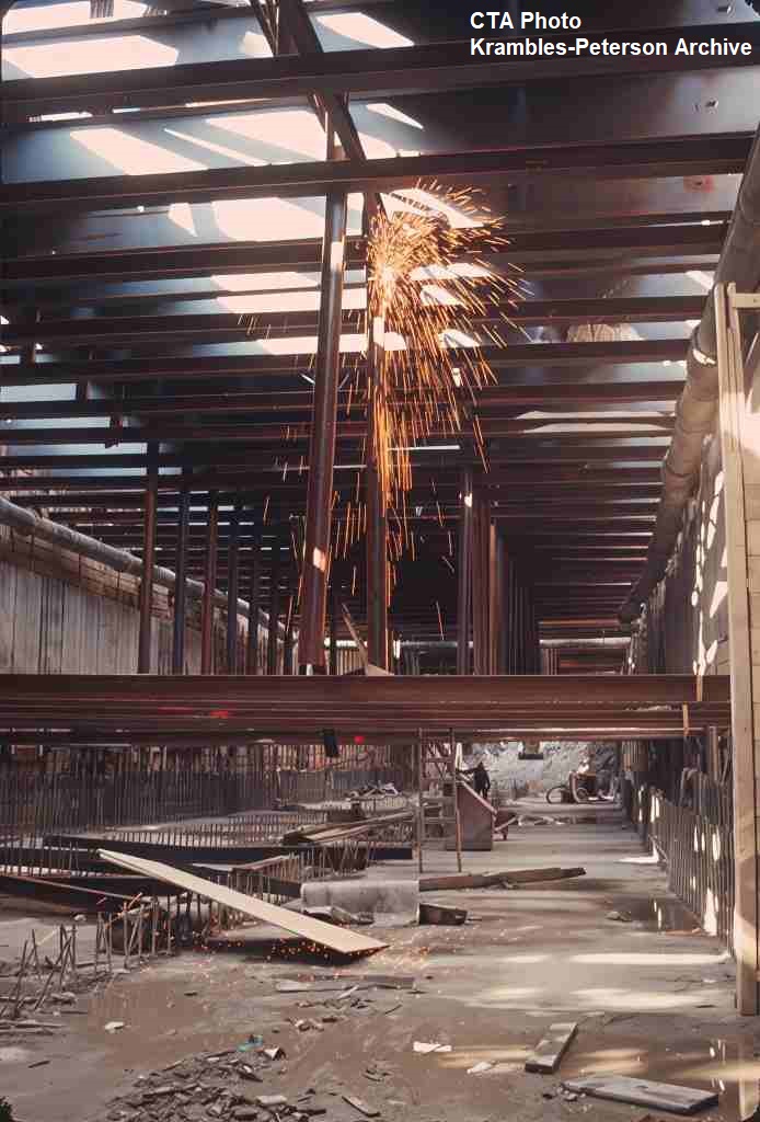 KP1101-CTA Logan Square/Milwaukee/O'Hare, Logan Square Station Platform under construction as seen from the platform level - c10/1969