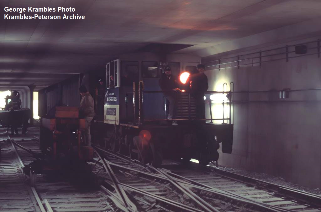 KP1094-CTA Logan Square/Milwaukee/O'Hare, Rare photo of a Ramco GE engine working in the subway. Location is the Belmont crossover. Note the very tight clearances. - c12/1969
