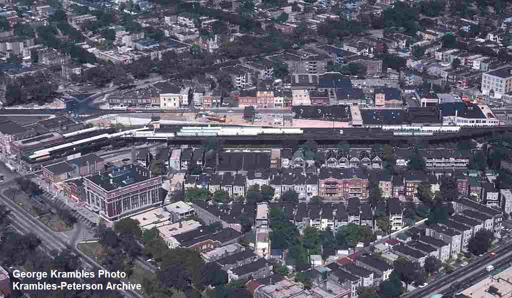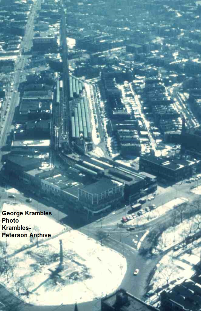 KP1105-CTA Logan Square/Milwaukee/O'Hare, Aerial view of the Logan Square Terminal and yard area - 02/21/1966