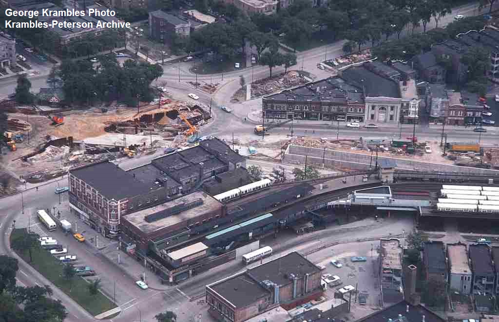 KP1098-CTA Logan Square/Milwaukee/O'Hare, View looking north at the street level portion of the Logan Square Station under construction - c10/1969