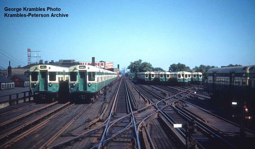 KP1112-CTA Logan Square/Milwaukee/O'Hare, Two 6005-class trains and Logan Square Yard - 07/29/1951