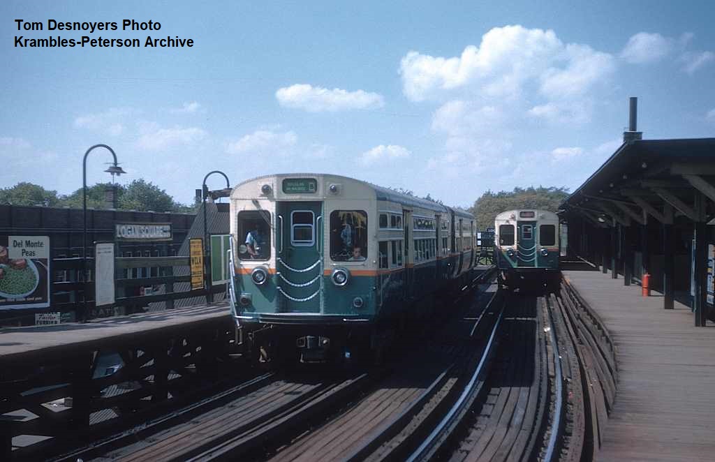KP1126-CTA Logan Square/Milwaukee/O'Hare, Northbound 6005-class cars near the Damen Station - 06/28/1952