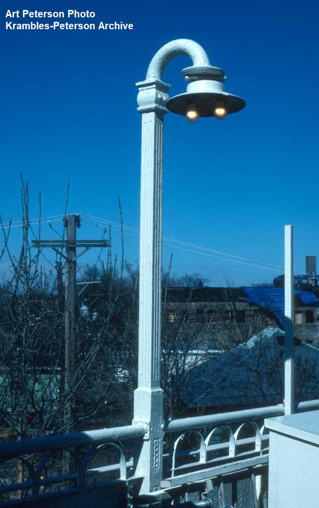KP1128-CTA Logan Square/Milwaukee/O'Hare, One of the few remaining MWSE lamp columns at Damen - 04/25/1995
