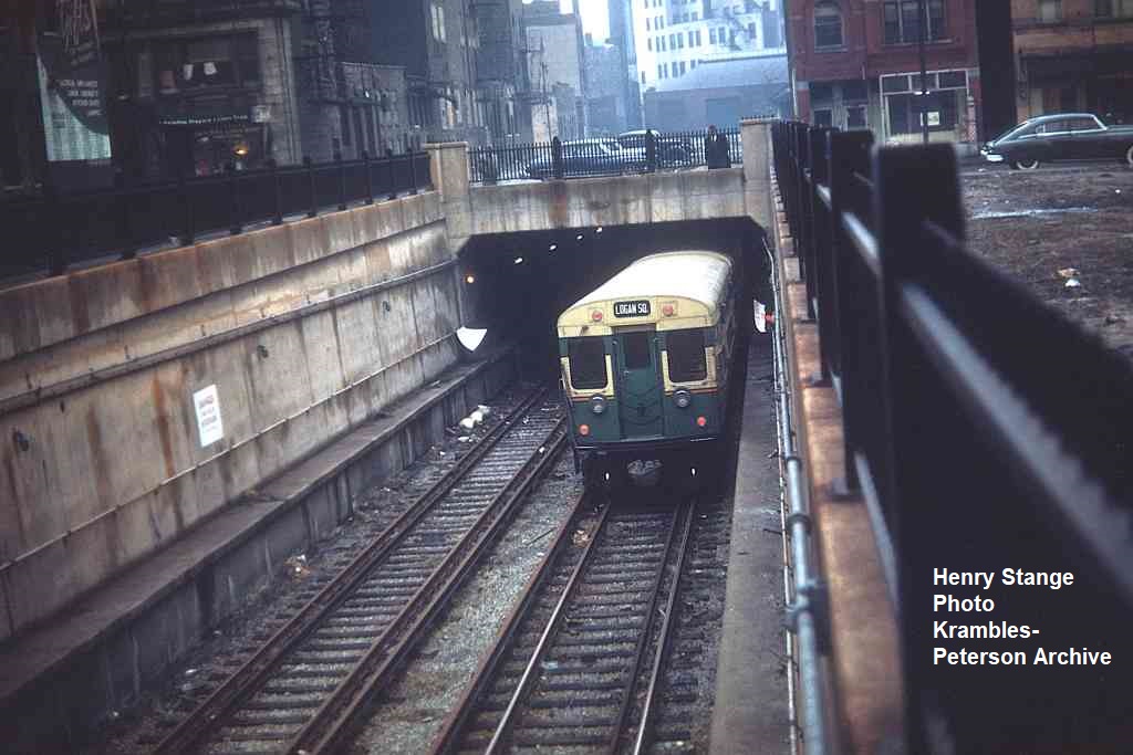KP1154-CTA Logan Square/Milwaukee/O'Hare, Looking south from the Chicago Station - 06/26/1960