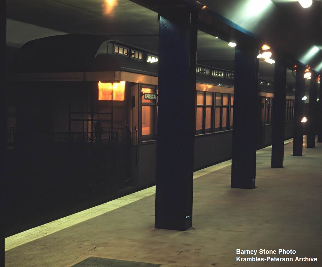 KP1142-CTA Logan Square/Milwaukee/O'Hare, #2745 in the Division Station. The Met car gates were ideal for holding the photographer's lamps required to illuminate the 6000s, barely visible, parked a little further back in the station, which resulted in a photo that appeared on the cover of the booklet issued to commemorate the opening of the subway. - 02/1951