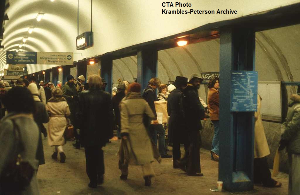 KP1146-CTA Logan Square/Milwaukee/O'Hare, Washington platform - 01/11/1979
