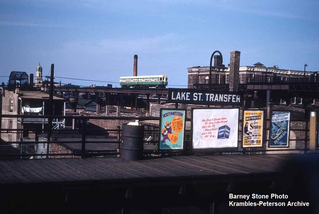 KP1158-CTA Logan Square/Milwaukee/O'Hare, View Northeast from the Lake Street platform at Lake Transfer - 02/24/1951
