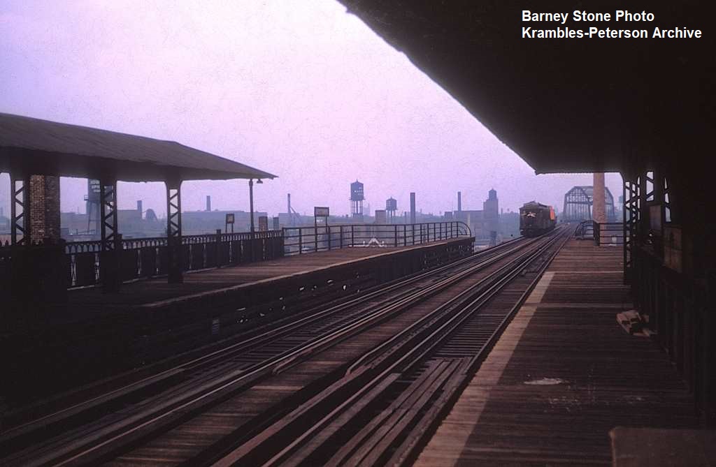 KP1159-CTA Logan Square/Milwaukee/O'Hare, View of a car transfer heading south through the former station - 06/24/1961