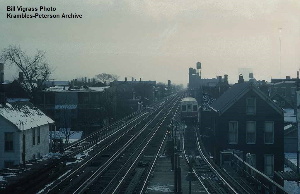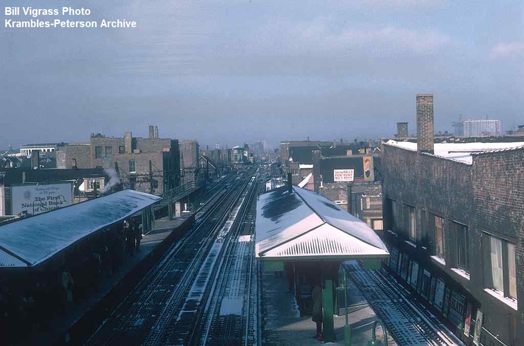 KP1261-CTA Howard/Dan Ryan, View looking north from the Belmont Station pedestrian bridge - 01/12/1963