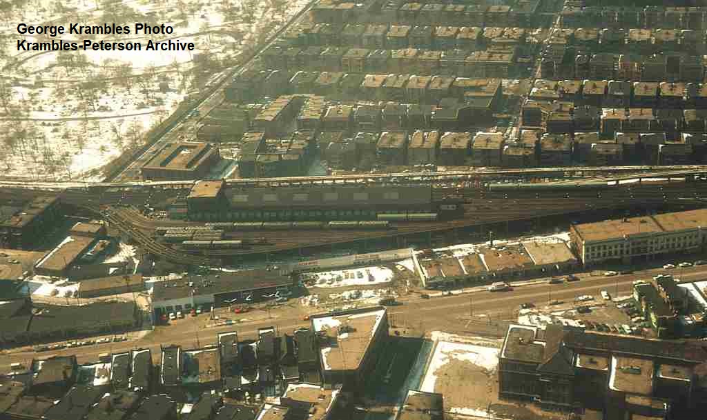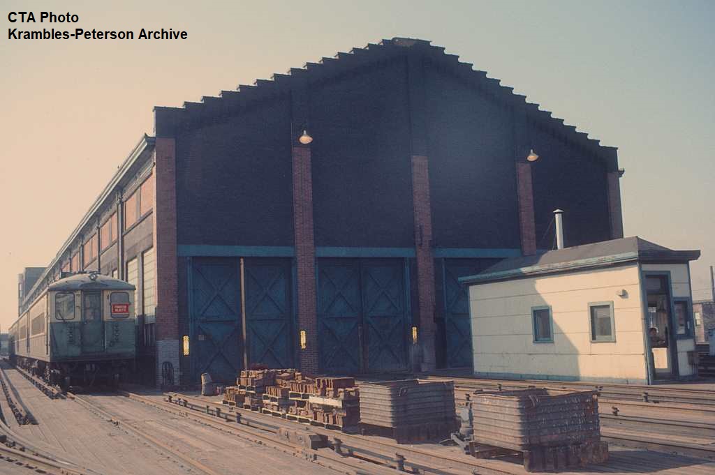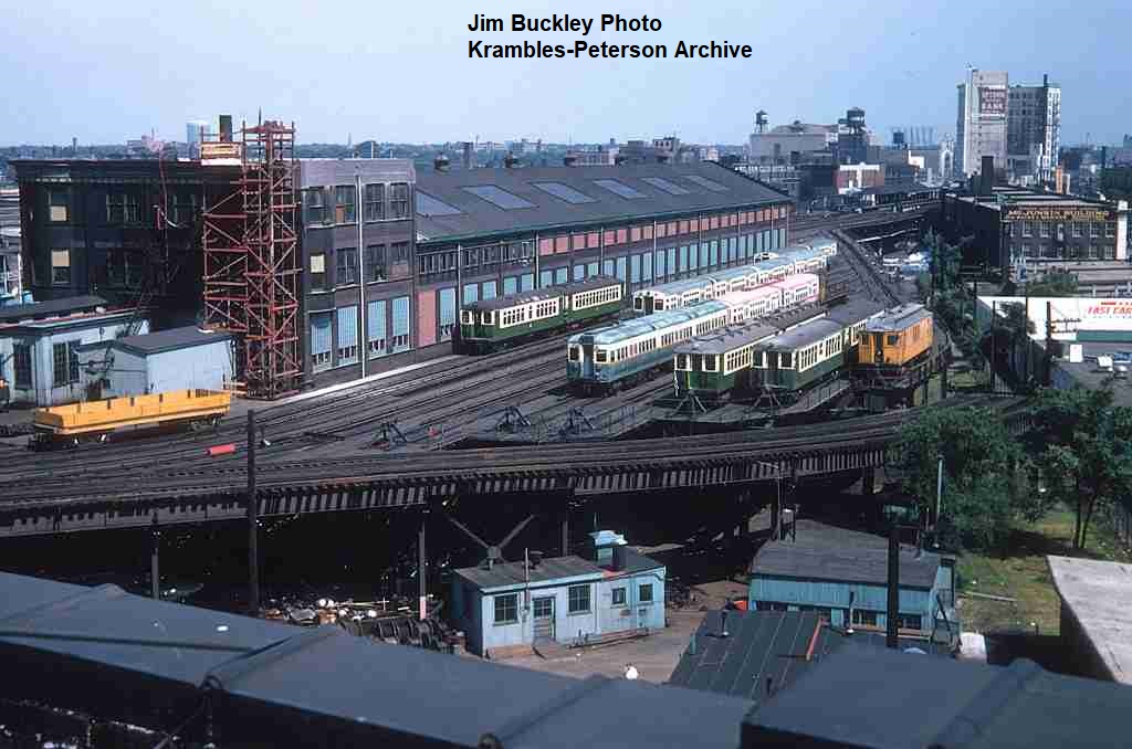 KP1222-CTA Howard/Dan Ryan, Wilson Shops with the small white switchman's shanty just outside - c03/1970