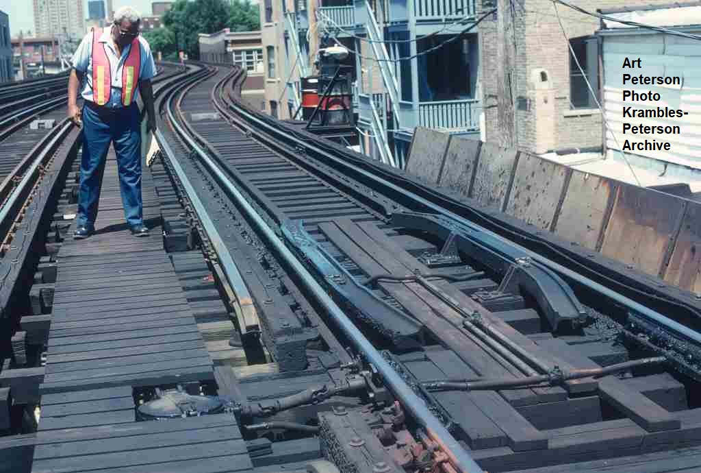 KP1240-CTA Howard/Dan Ryan, The flange oiler installation being inspected by Lee Stewart of Gibbs & Hill - 07/30/1991