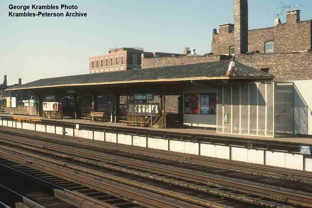 KP1248-CTA Howard/Dan Ryan, The 'L' structure at street level across from the Addison Station House - 03/31/1984
