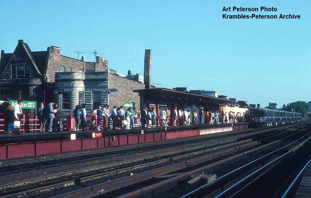 KP1250-CTA Howard/Dan Ryan, Southbound Addison Station platform during morning rush in the era when stations received a maroon accent color - 08/12/1991