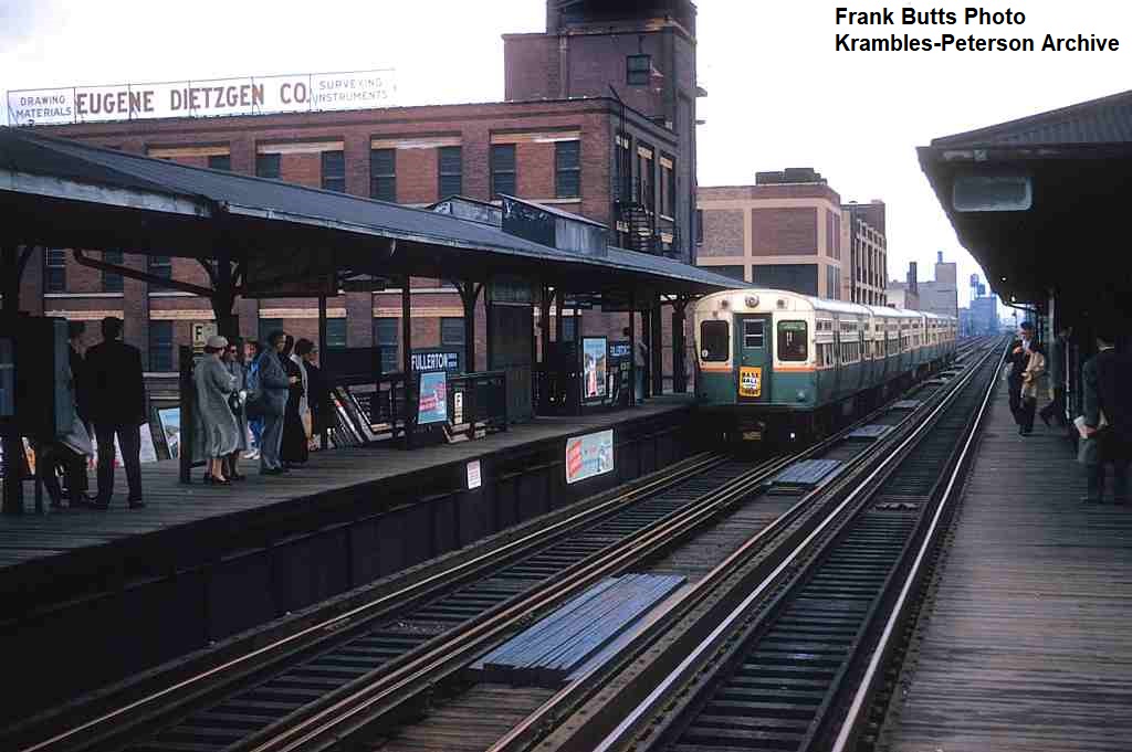 KP1276-CTA North Side Mainline, Southbound train arriving at Fullerton Station - c05/1961