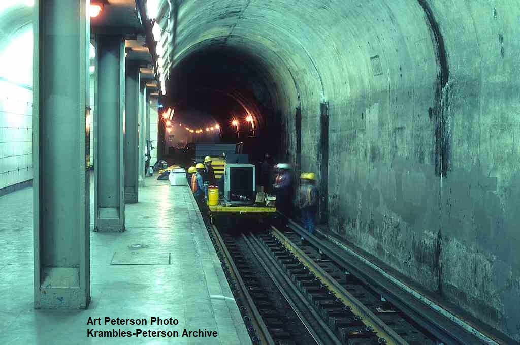 KP1290-CTA State Street Subway, Track renewal work on the Northbound track through North & Clybourn - 04/21/1991