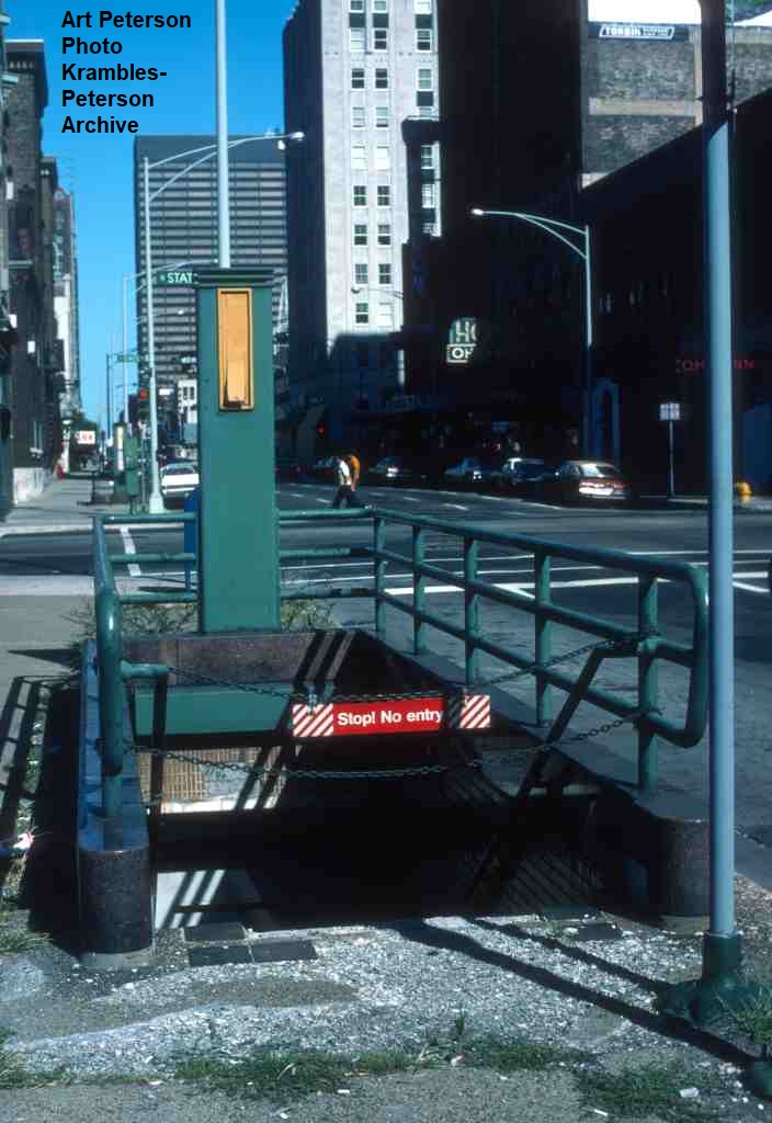 KP1291-CTA State Street Subway, Closed subway entrance at State & Ohio - 08/28/1976