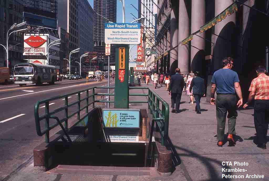 KP1293-CTA State Street Subway, Subway entrance in the Northeast quadrant of Washington & State - 09/17/1971