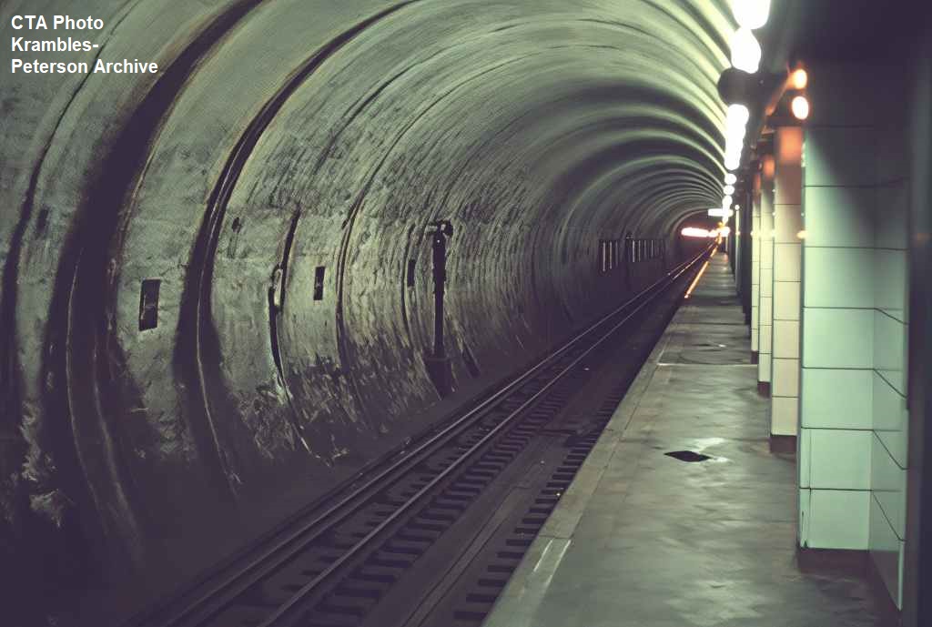 KP1295-CTA State Street Subway, Looking south through the Northbound tube at Jackson & State - 10/24/1971