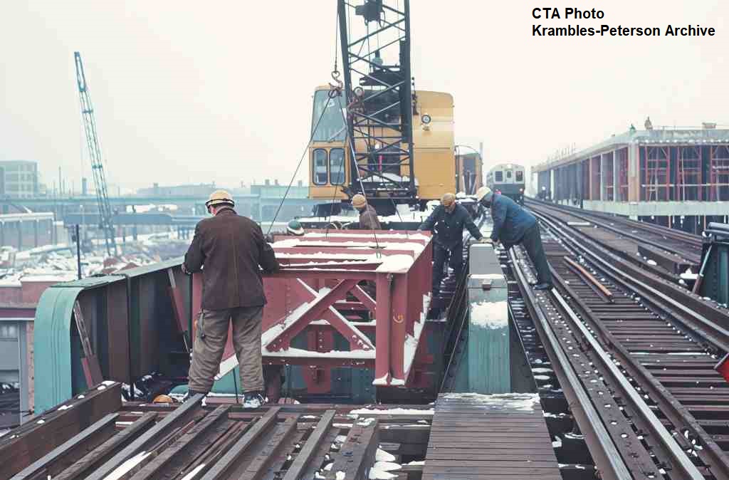 KP1314-CTA South Side Mainline, Looking south across the structural replacement work zone at Pershing - 02/23/1972
