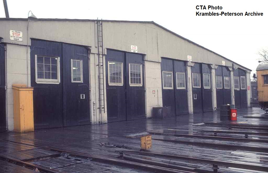 KP1374-CTA Jackson Park Branch, Exterior of the "White House" inspection building in 61 Street Yard - c03/1970