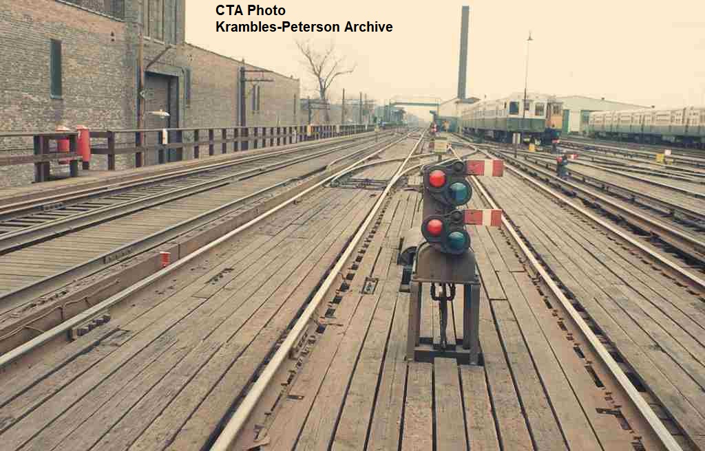 KP1372-CTA Jackson Park Branch, 61st Street Shop with (R-L) #S-5, #6069 and #6061 in view - c03/1970
