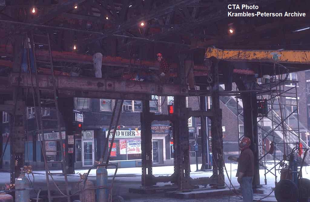 KP1379-CTA Jackson Park Branch, Structural repair work at King Drive - c01/1972