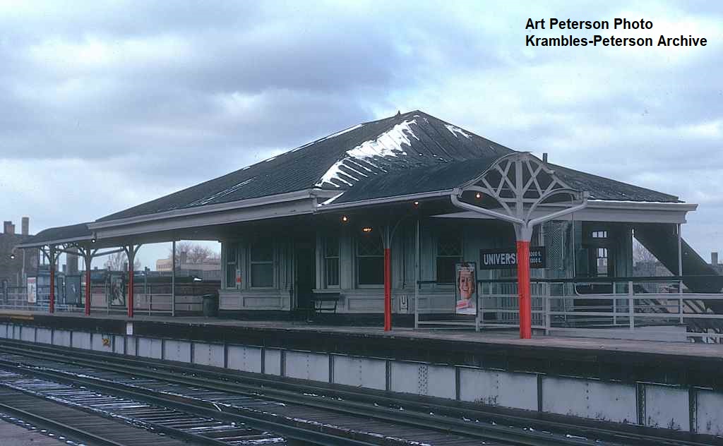 KP1381-CTA Jackson Park Branch, The inbound University Station House - 01/26/1975
