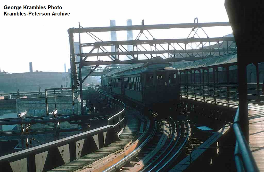 KP1395-CTA Stock Yards Branch, Train arriving at the Wallace Station - 09/30/1957