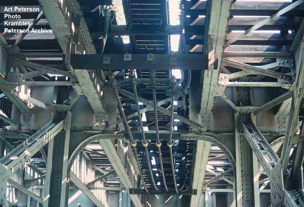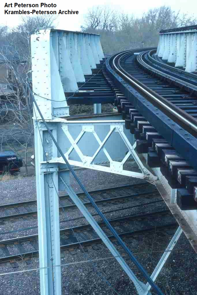 KP1483-CTA Ravenswood, Looking up at the wooden cantilever at Seminary - 09/06/1991